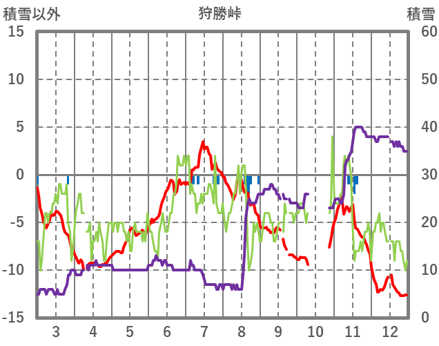 | 日 | 時 | 気温 | 降水 | 風向/風速 | 日照 | 積雪 | 降雪 |