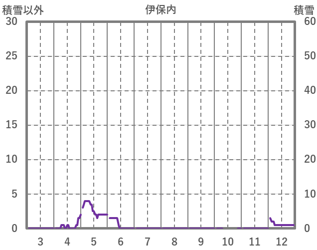 | 日 | 時 | 気温 | 降水 | 風向/風速 | 日照 | 積雪 | 降雪 |
