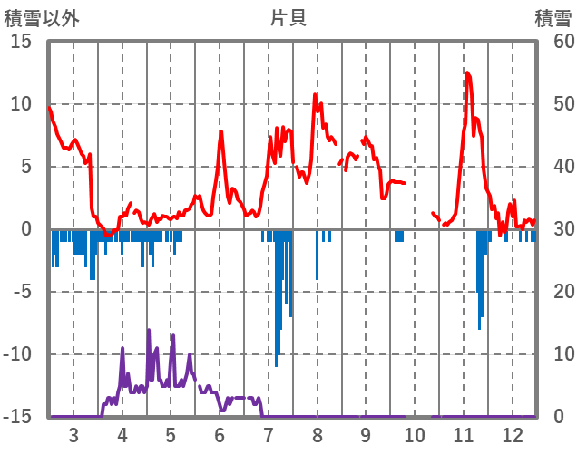 | 日 | 時 | 気温 | 降水 | 風向/風速 | 日照 | 積雪 | 降雪 |