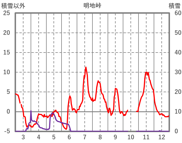 | 日 | 時 | 気温 | 降水 | 風向/風速 | 日照 | 積雪 | 降雪 |