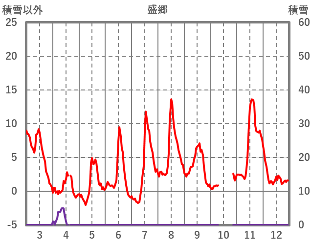 | 日 | 時 | 気温 | 降水 | 風向/風速 | 日照 | 積雪 | 降雪 |