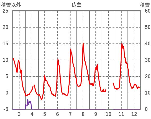 | 日 | 時 | 気温 | 降水 | 風向/風速 | 日照 | 積雪 | 降雪 |