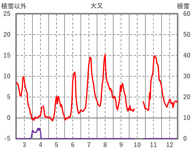 | 日 | 時 | 気温 | 降水 | 風向/風速 | 日照 | 積雪 | 降雪 |