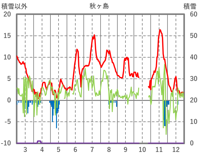 | 日 | 時 | 気温 | 降水 | 風向/風速 | 日照 | 積雪 | 降雪 |