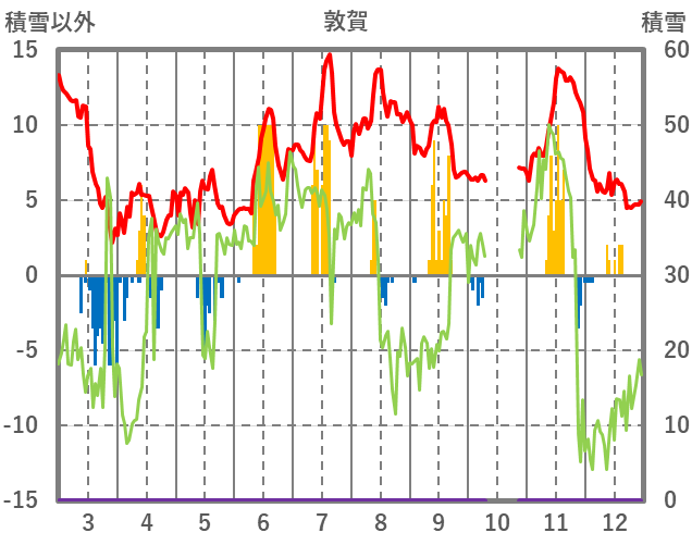| 日 | 時 | 気温 | 降水 | 風向/風速 | 日照 | 積雪 | 降雪 |