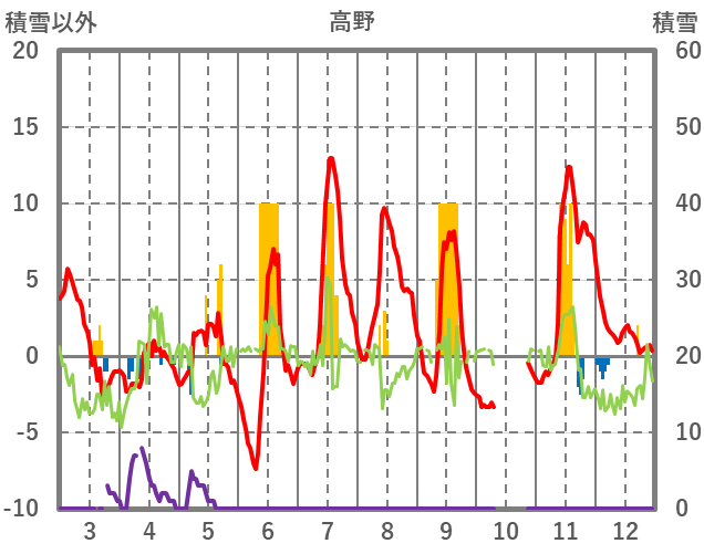 | 日 | 時 | 気温 | 降水 | 風向/風速 | 日照 | 積雪 | 降雪 |
