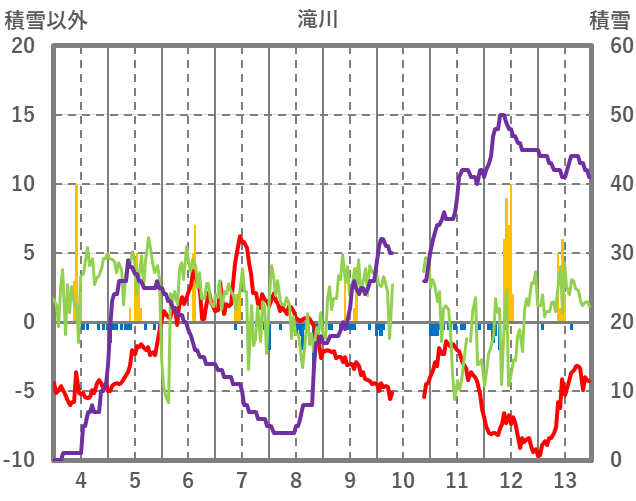 | 日 | 時 | 気温 | 降水 | 風向/風速 | 日照 | 積雪 | 降雪 |