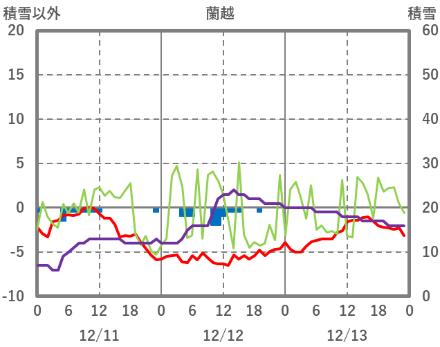 | 日 | 時 | 気温 | 降水 | 風向/風速 | 日照 | 積雪 | 降雪 |