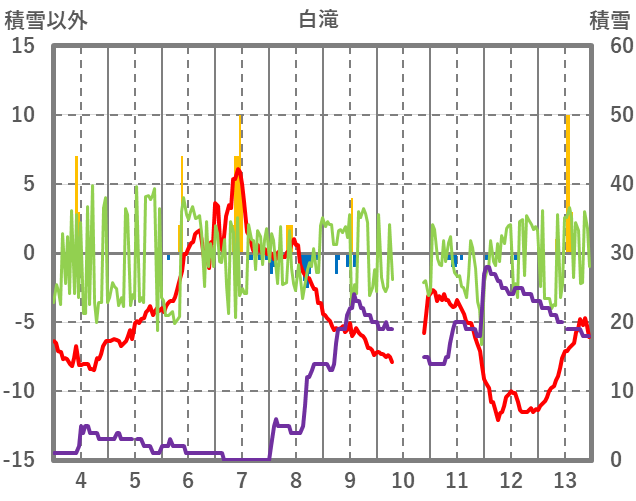 | 日 | 時 | 気温 | 降水 | 風向/風速 | 日照 | 積雪 | 降雪 |