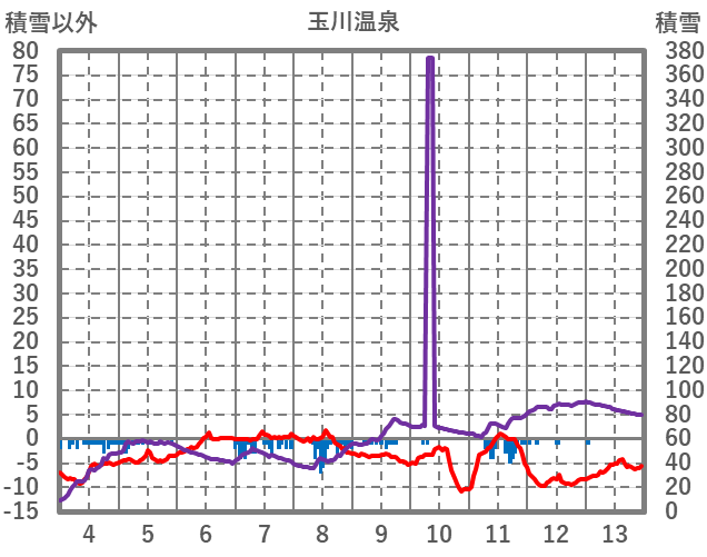 | 日 | 時 | 気温 | 降水 | 風向/風速 | 日照 | 積雪 | 降雪 |