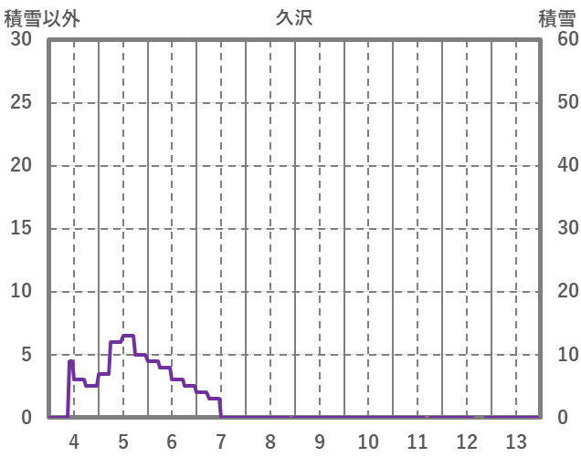 | 日 | 時 | 気温 | 降水 | 風向/風速 | 日照 | 積雪 | 降雪 |