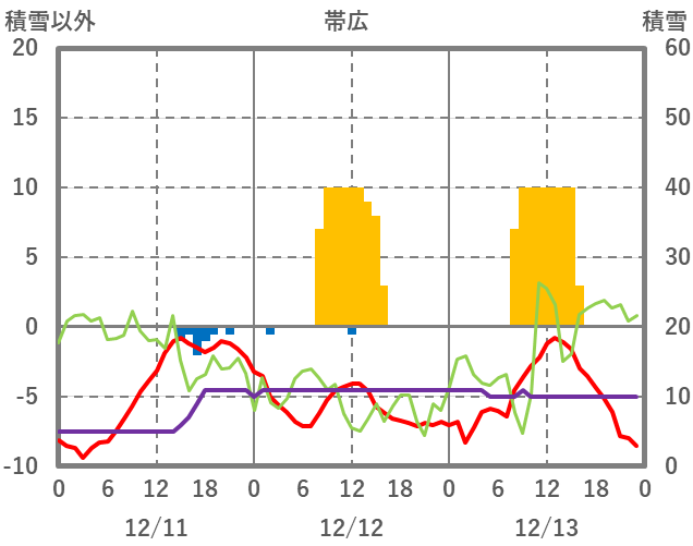 | 日 | 時 | 気温 | 降水 | 風向/風速 | 日照 | 積雪 | 降雪 |