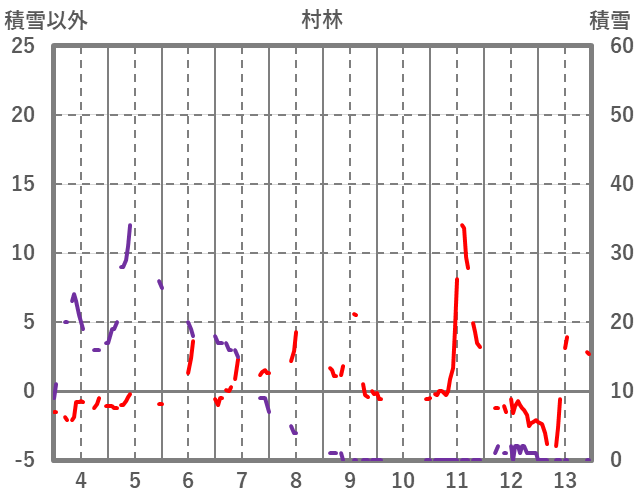 | 日 | 時 | 気温 | 降水 | 風向/風速 | 日照 | 積雪 | 降雪 |