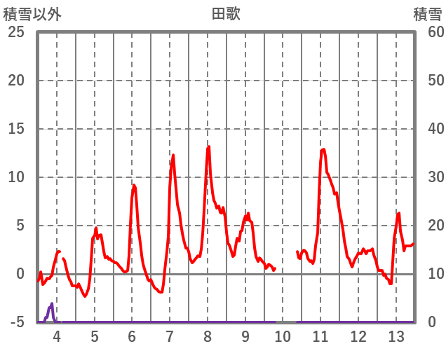 | 日 | 時 | 気温 | 降水 | 風向/風速 | 日照 | 積雪 | 降雪 |