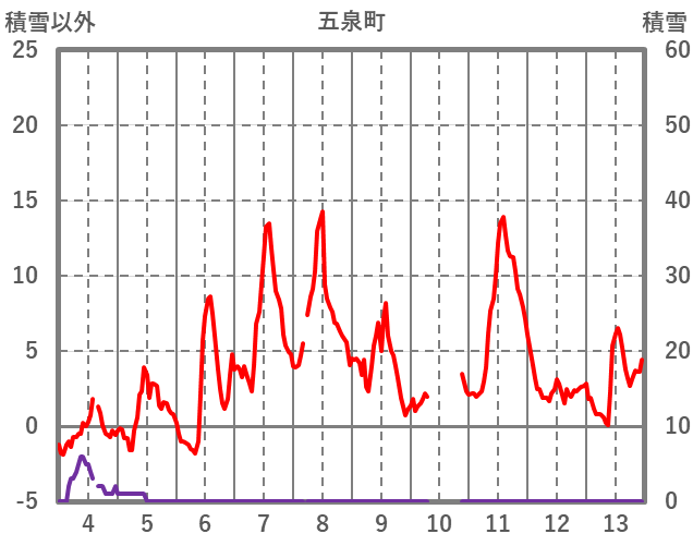 | 日 | 時 | 気温 | 降水 | 風向/風速 | 日照 | 積雪 | 降雪 |