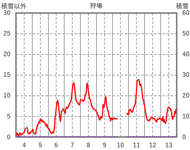 | 日 | 時 | 気温 | 降水 | 風向/風速 | 日照 | 積雪 | 降雪 |