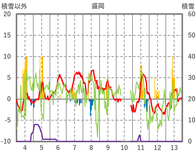 | 日 | 時 | 気温 | 降水 | 風向/風速 | 日照 | 積雪 | 降雪 |