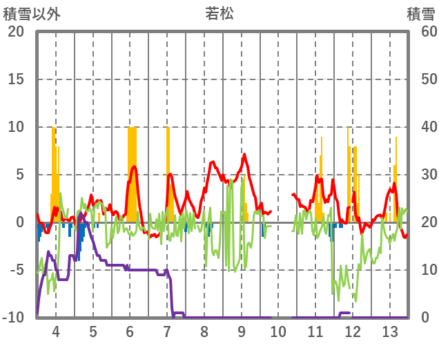 | 日 | 時 | 気温 | 降水 | 風向/風速 | 日照 | 積雪 | 降雪 |