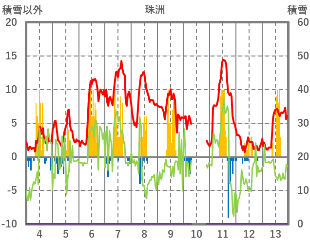 | 日 | 時 | 気温 | 降水 | 風向/風速 | 日照 | 積雪 | 降雪 |