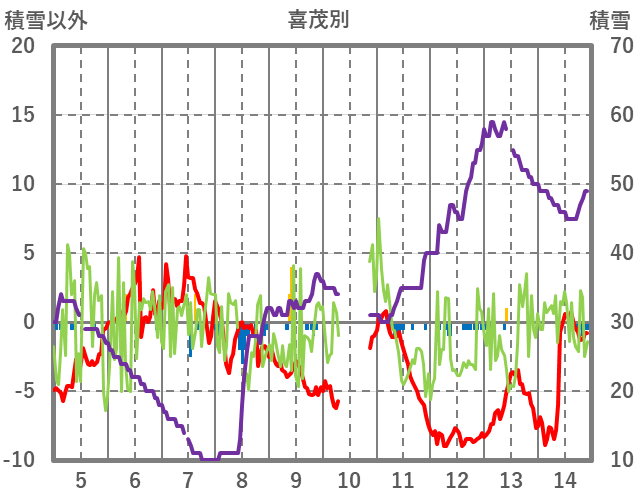 | 日 | 時 | 気温 | 降水 | 風向/風速 | 日照 | 積雪 | 降雪 |