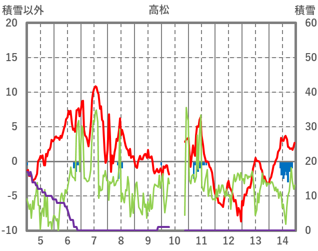 | 日 | 時 | 気温 | 降水 | 風向/風速 | 日照 | 積雪 | 降雪 |