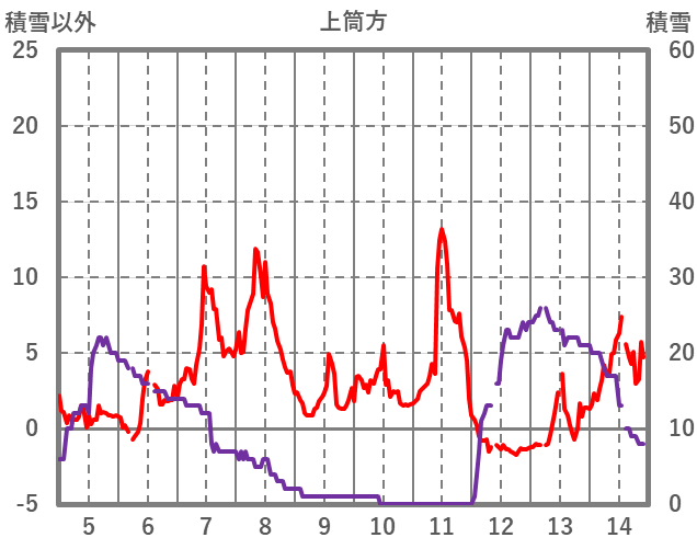 | 日 | 時 | 気温 | 降水 | 風向/風速 | 日照 | 積雪 | 降雪 |
