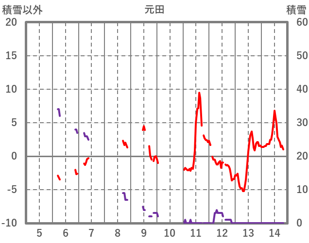 | 日 | 時 | 気温 | 降水 | 風向/風速 | 日照 | 積雪 | 降雪 |
