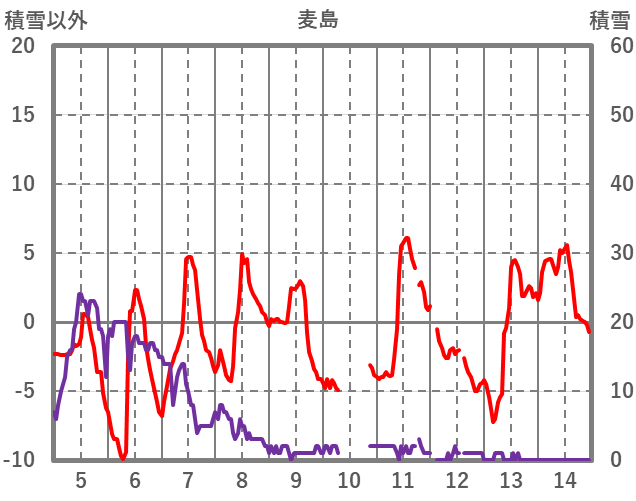 | 日 | 時 | 気温 | 降水 | 風向/風速 | 日照 | 積雪 | 降雪 |