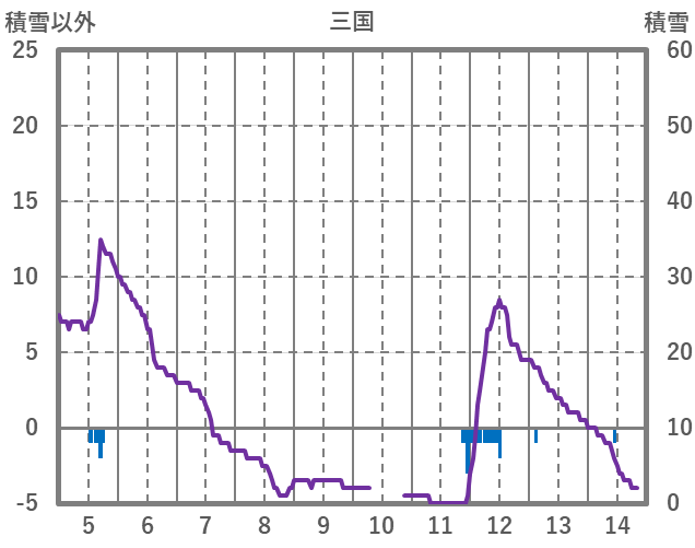 | 日 | 時 | 気温 | 降水 | 風向/風速 | 日照 | 積雪 | 降雪 |