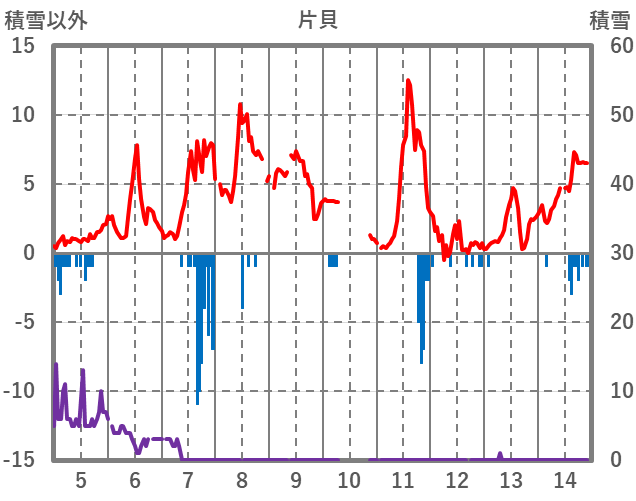 | 日 | 時 | 気温 | 降水 | 風向/風速 | 日照 | 積雪 | 降雪 |