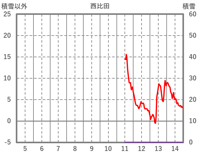 | 日 | 時 | 気温 | 降水 | 風向/風速 | 日照 | 積雪 | 降雪 |