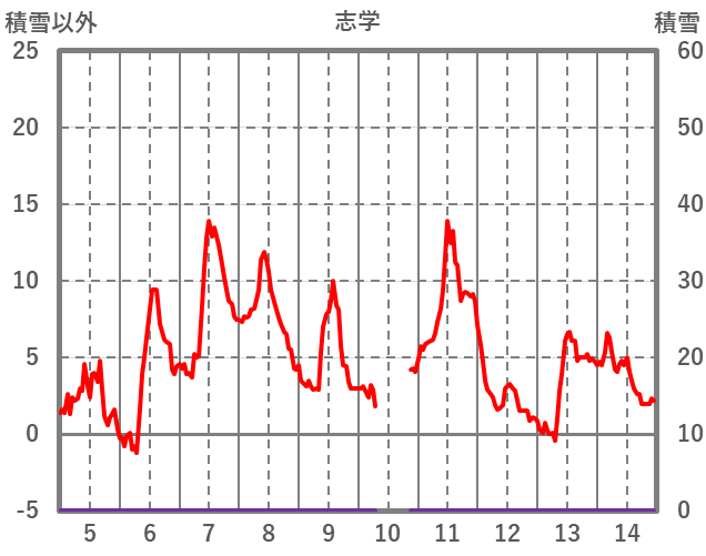 | 日 | 時 | 気温 | 降水 | 風向/風速 | 日照 | 積雪 | 降雪 |
