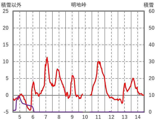 | 日 | 時 | 気温 | 降水 | 風向/風速 | 日照 | 積雪 | 降雪 |