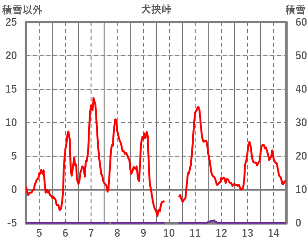 | 日 | 時 | 気温 | 降水 | 風向/風速 | 日照 | 積雪 | 降雪 |