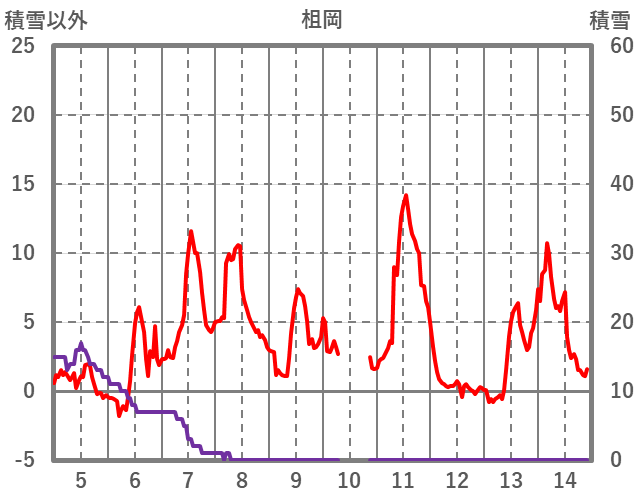 | 日 | 時 | 気温 | 降水 | 風向/風速 | 日照 | 積雪 | 降雪 |