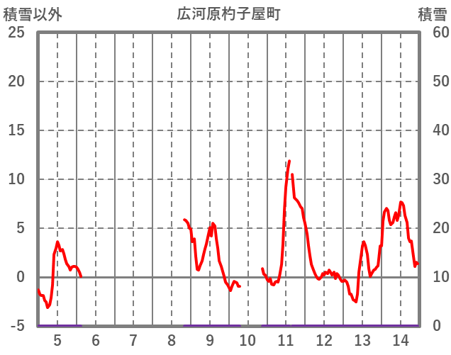 | 日 | 時 | 気温 | 降水 | 風向/風速 | 日照 | 積雪 | 降雪 |