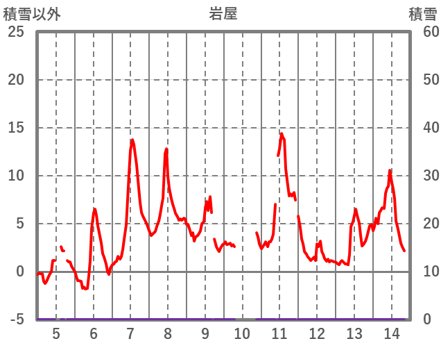 | 日 | 時 | 気温 | 降水 | 風向/風速 | 日照 | 積雪 | 降雪 |