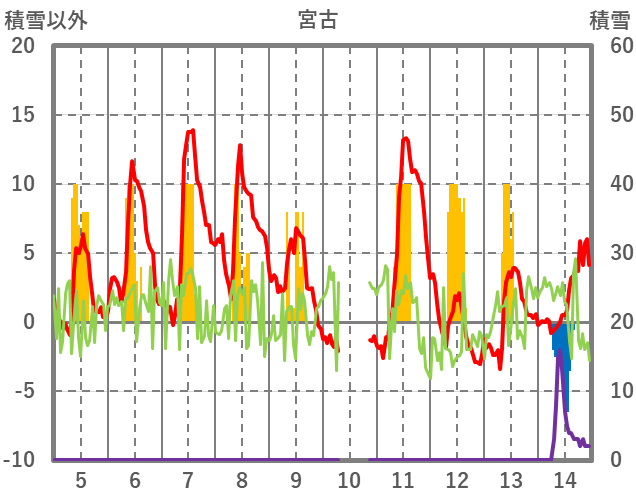 | 日 | 時 | 気温 | 降水 | 風向/風速 | 日照 | 積雪 | 降雪 |