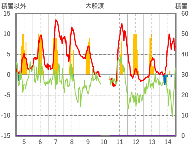 | 日 | 時 | 気温 | 降水 | 風向/風速 | 日照 | 積雪 | 降雪 |