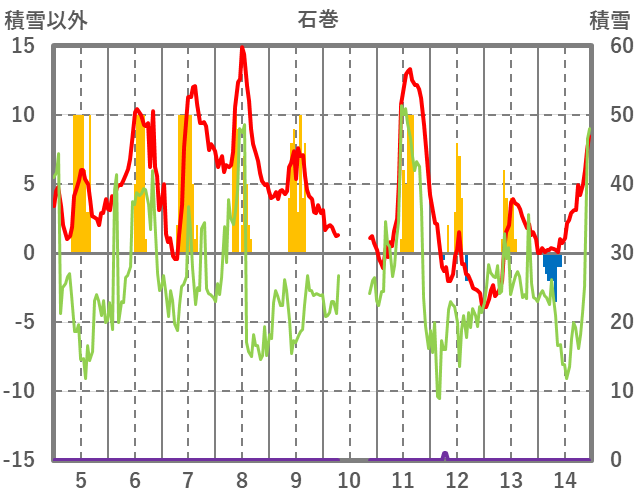 | 日 | 時 | 気温 | 降水 | 風向/風速 | 日照 | 積雪 | 降雪 |