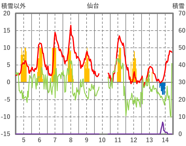 | 日 | 時 | 気温 | 降水 | 風向/風速 | 日照 | 積雪 | 降雪 |