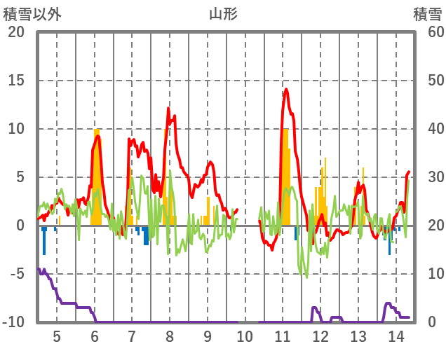 | 日 | 時 | 気温 | 降水 | 風向/風速 | 日照 | 積雪 | 降雪 |