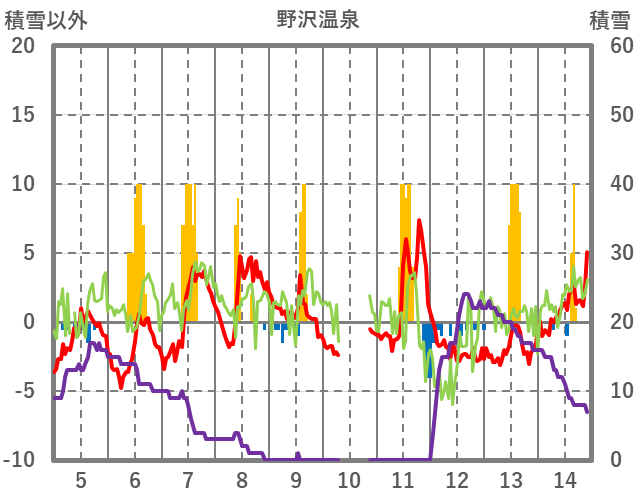 | 日 | 時 | 気温 | 降水 | 風向/風速 | 日照 | 積雪 | 降雪 |