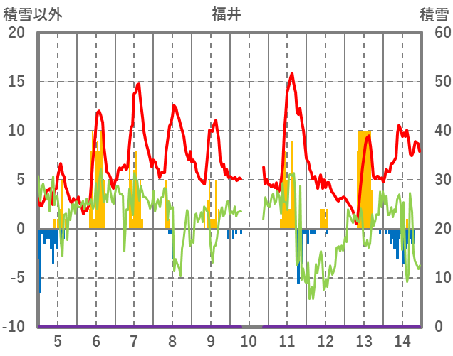 | 日 | 時 | 気温 | 降水 | 風向/風速 | 日照 | 積雪 | 降雪 |