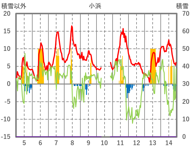 | 日 | 時 | 気温 | 降水 | 風向/風速 | 日照 | 積雪 | 降雪 |