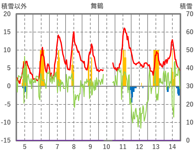 | 日 | 時 | 気温 | 降水 | 風向/風速 | 日照 | 積雪 | 降雪 |