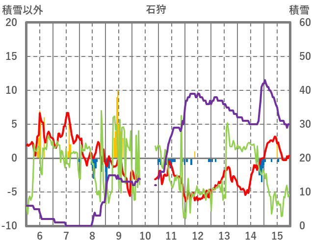 | 日 | 時 | 気温 | 降水 | 風向/風速 | 日照 | 積雪 | 降雪 |