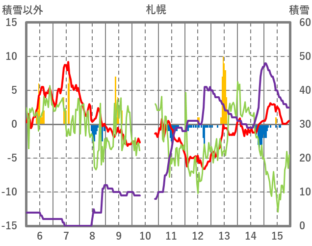 | 日 | 時 | 気温 | 降水 | 風向/風速 | 日照 | 積雪 | 降雪 |