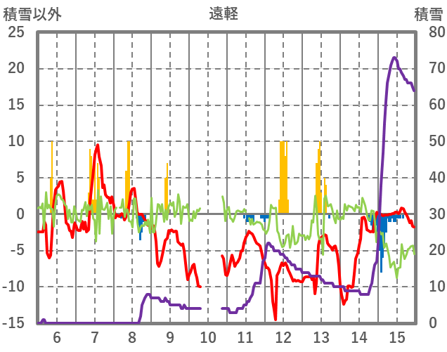 | 日 | 時 | 気温 | 降水 | 風向/風速 | 日照 | 積雪 | 降雪 |