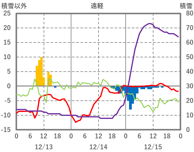 | 日 | 時 | 気温 | 降水 | 風向/風速 | 日照 | 積雪 | 降雪 |